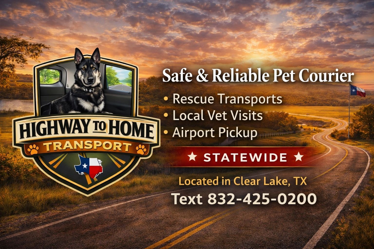 Based in Clear Lake, Texas, we treat every pet like family and focus on making each journey as comfortable and stress-free as possible.